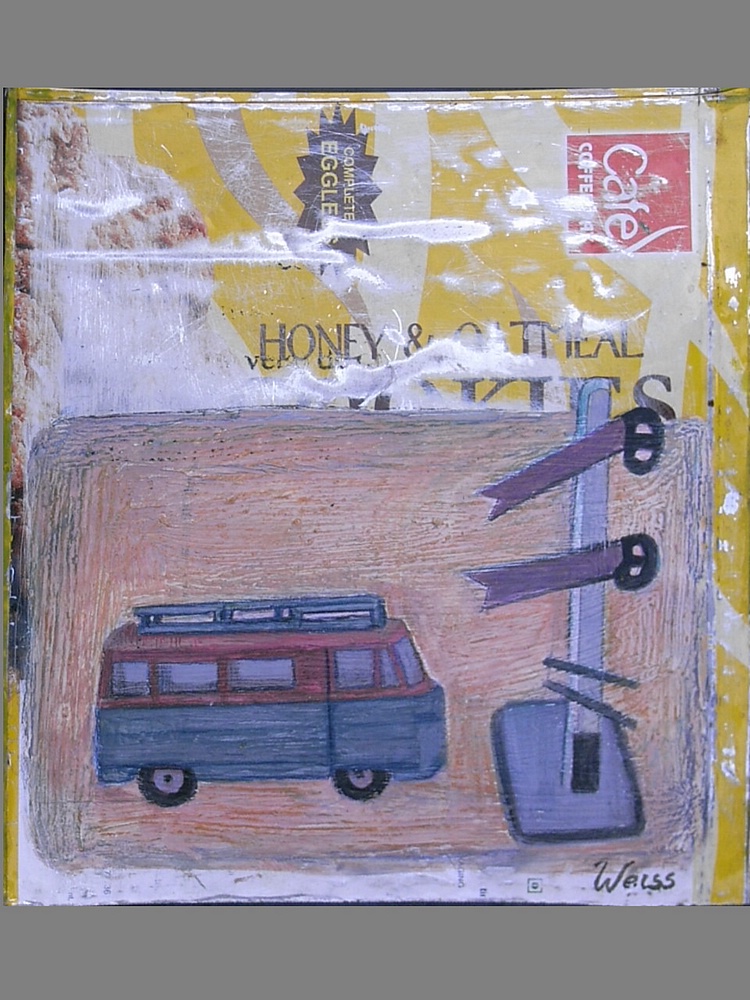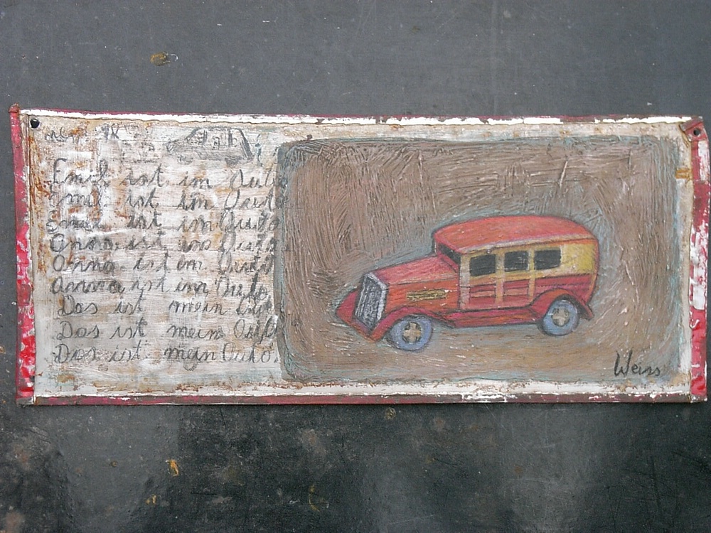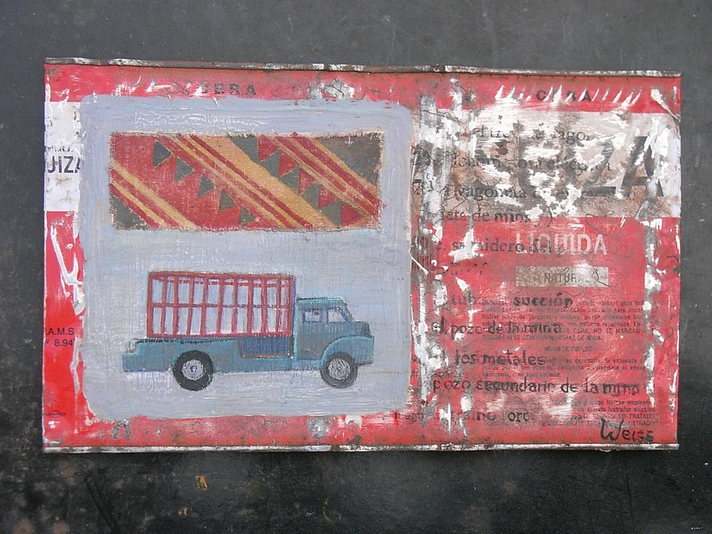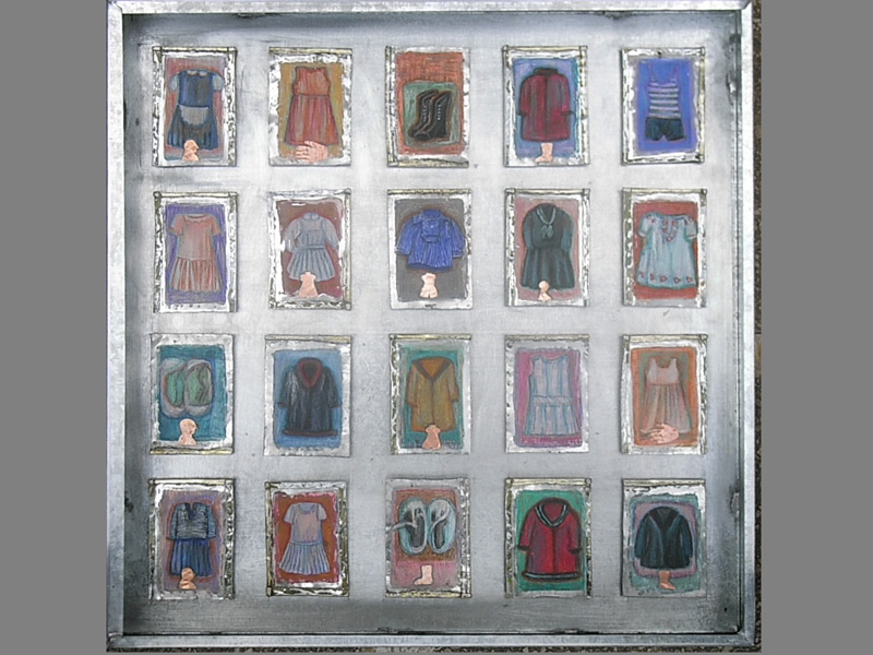 Mis cuadros muestran objetos, que dejamos de lado en el correr de nuestra vida: vestidos infantiles y zapatos, juguetes, cuadernos escolares, dibujos. Cosas y objetos que quedaron atrás, de personas, de lugares que quizás ya no existen o no son como eran entonces: Fotos, documentos, diarios íntimos, cartas, mapas, planos, bocetos… Cosas u objetos en los cuales nos “envolvemos”, con las cuales nos “abrigamos”, como si fueran nuestra segunda piel y que definen una parte de nuestra identidad: Vestidos, sacos, abrigos, zapatos. En el último tiempo me intereso también en objetos que utilizamos y tiramos a la basura: reciclo latas de cualquier tipo; las abro cortándolas, las martillo, lijo, y las preparo para poder intervenirlas pictóricamente. Las latas representan también las cajas donde los niños guardan sus “tesoros”. Los objetos son importantes para mí, porque en ellos está inscripto el recuerdo de lo que en algún momento fuimos. Son las huellas de nuestro pasaje en este camino que es la vida. Estas huellas trato de inscribir o transcribir en esta nueva superficie que utilizo actualmente: metal, cubierto de enduido, yeso, pintado con acrílico, lápices de colores y pasteles grasos. Esta forma de trabajar la comparo con la forma de proceder de un arqueólogo que con extremo cuidado, va desenterrando capa por capa, con pincel y espátula, con el fin de traer a la luz vestigios y testimonios del pasado. El escritor alemán W.G.Sebald escribió: “Como en general los Objetos nos sobreviven, saben más de nosotros que nosotros de ellos; cargan con las experiencias hechas con nosotros y son en verdad, el libro abierto de nuestra Historia”.