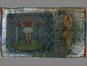 In letzter Zeit interessieren mich mehr und mehr Dinge, die wir benutzen und wegwerfen. Daher recycle ich Blechdosen, bearbeite sie und nutze sie als Untergrund, auf den ich male. Die Blechdosen erinnern auch an Schatzdosen die viele Kinder vor ihren Eltern verstecken… Dinge sind wichtig für mich, weil die Erinnerung an Menschen in sie eingeschrieben ist.